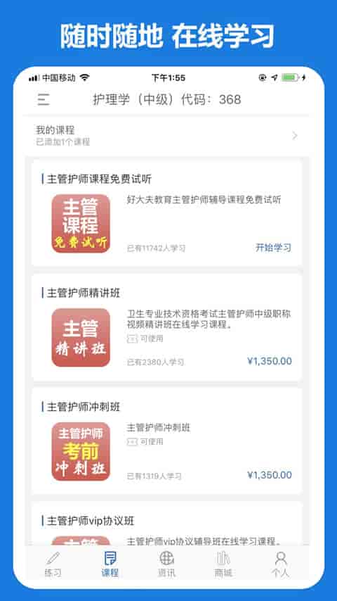 1、方便快捷,隨時隨地輕松學習,配套習題-模考-模擬-押題都有,科學循環式學習。