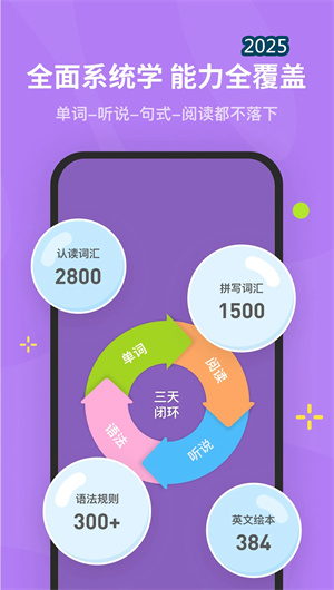 蛋糕英語是百詞斬旗下專為中國6-12歲小學生設計的少兒英語系統提升產品,內容嚴格對標劍橋少兒英語(劍少)和新課標,采用短時高頻的學習模式,每日僅需20分鐘,即可全面覆蓋單詞記憶、聽力口語、分級閱讀和語法句式四大核心板塊。通過科學記憶曲線和浸潤式學習,幫助孩子高效掌握2800+核心詞匯,并提升語言應用能力,實現小初高英語無縫銜接。