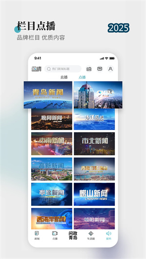 藍睛APP是青島廣播電視臺官方推出的新媒體客戶端,以視頻直播為核心,以新聞首發為特色,整合了青島廣電旗下所有優質內容資源。作為融媒體平臺,藍睛APP實現了傳統媒體與新媒體的無縫融合,依托AI智能推薦和大數據分析技術,為用戶提供個性化、實時化的視聽體驗。其標志性的“藍眼睛”品牌形象,象征著聚焦城市動態、洞察生活百態,讓用戶通過高清流媒體、互動彈幕、VR全景直播等創新功能,感受沉浸式新聞消費新方式。