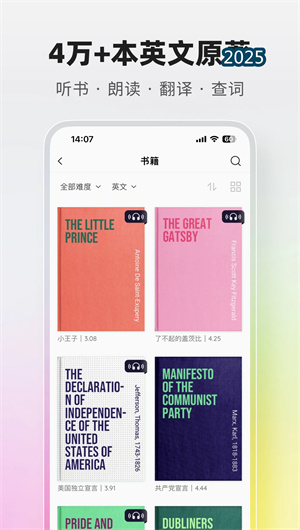 火龍果APP內置4萬+英文原著庫,涵蓋從經典文學到現代作品的廣泛品類。智能分級系統根據用戶水平推薦合適讀物,劃句翻譯功能實現即點即譯,AI朗讀引擎提供地道的語音示范。生詞本自動生成功能收集閱讀中的生詞,而閱讀進度追蹤則幫助用戶保持穩定的閱讀習慣,全方位提升英語語感。