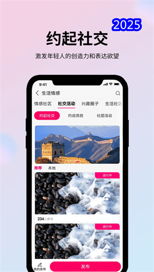 2. 創(chuàng)意約起社交:"靈感激發(fā)池"提供500+個創(chuàng)意活動模板;"表達力評估系統(tǒng)"分析用戶內(nèi)容質(zhì)量;"同城約局匹配"智能推薦合適玩伴,每月促成超過1.2萬場線下創(chuàng)意聚會。