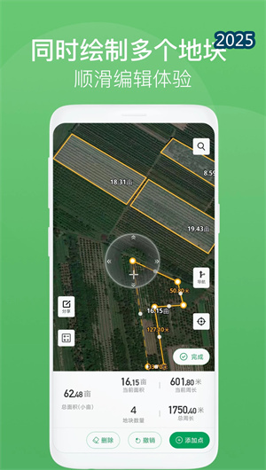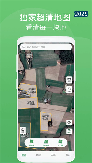 軟件內置高清地圖、衛星地圖、近期地圖三種視圖,用戶可根據需求自由切換。衛星數量顯示功能確保GPS信號穩定,提高測量精度。跟隨模式和全覽模式讓用戶在地塊測繪過程中隨時調整視角,而放大鏡功能則幫助用戶精細調整地塊邊界,確保測量數據的準確性。