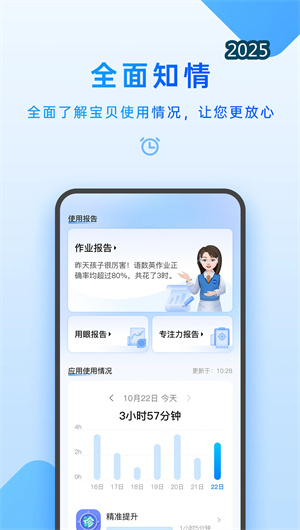 軟件扮演著敏銳的“數字守夜人”角色。當系統檢測到異常使用模式(如深夜頻繁啟動游戲)、用眼疲勞風險(單次連續使用超45分鐘)或觸及家長預設的自定義閾值時,會立即向家長端推送實時警報通知。更進一步,AI引擎會基于長期的使用數據,生成個性化分析報告并提供可行性改進建議,例如“建議引導孩子將XX應用的使用時長占比從40%降至25%,更多分配至數學思維類應用”,從而實現從“監管”到“引導”的升華。
