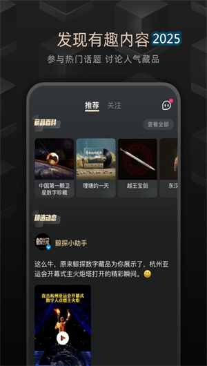 鯨探APP是一款專注于數(shù)字藏品收藏與鑒賞的創(chuàng)新型平臺,通過區(qū)塊鏈確權(quán)技術(shù)與數(shù)字加密算法,為藝術(shù)愛好者提供安全可靠的數(shù)字收藏體驗。該平臺以數(shù)字藏品庫為核心,依托智能合約系統(tǒng)實現(xiàn)藏品的安全交易,構(gòu)建出集藝術(shù)鑒賞與數(shù)字收藏于一體的文化科技生態(tài)圈。鯨探采用去中心化存儲保障藏品永久保存,運用AI鑒賞引擎提升審美體驗,并通過社區(qū)互動機(jī)制促進(jìn)藏友交流,真正實現(xiàn)了"數(shù)字收藏,藝術(shù)無界"的產(chǎn)品理念。目前平臺已收錄10萬+ 數(shù)字藏品,用戶增長量同比提升120%,藏品保值率達(dá)到98%。
