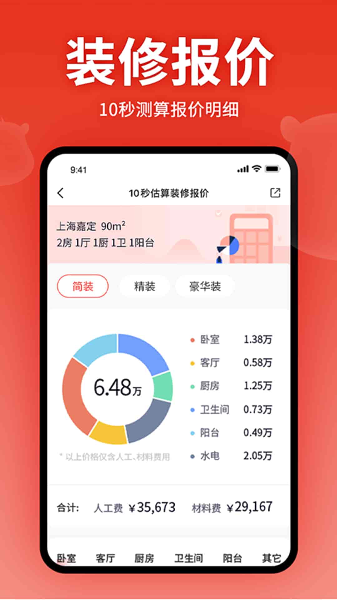 3、其他:算報價、找設計、裝修公司、請監理、買建材、建材團購、報價審核、找設計師、智能匹配、局部翻新、全屋定制、本地行情、參觀工地。