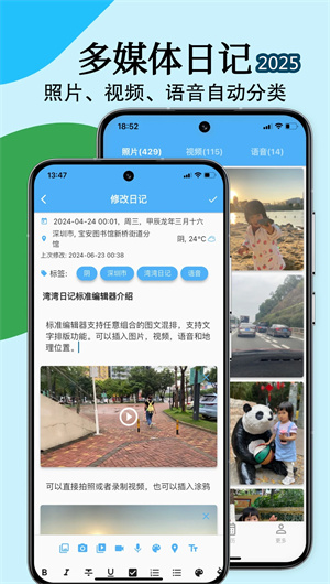用戶可通過富文本編輯器、Markdown語法支持及多媒體自由插入功能實(shí)現(xiàn)多樣化內(nèi)容創(chuàng)作,結(jié)合語音轉(zhuǎn)文字引擎快速生成日記內(nèi)容。系統(tǒng)提供聊天模式寫日記界面降低書寫壓力,并配備補(bǔ)寫功能允許回溯補(bǔ)充歷史記錄,同時(shí)自動(dòng)嵌入時(shí)間地點(diǎn)標(biāo)簽與天氣數(shù)據(jù)記錄,確保每篇日記上下文信息完整可追溯。