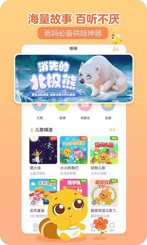 2、音頻分類:兒歌童謠、童話故事、國(guó)學(xué)經(jīng)典、百科大全、廣播劇集、認(rèn)知啟蒙、學(xué)科啟蒙。
