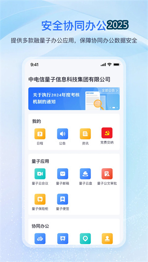 3. 量子安全辦公應(yīng)用整合功能:量子密信深度融合審批、公文、考勤和郵件等辦公模塊,通過量子安全存儲和量子加密數(shù)據(jù)庫技術(shù)保護(hù)數(shù)據(jù)靜態(tài)安全。利用量子哈希函數(shù)和量子時(shí)間戳確保操作不可否認(rèn)性,而量子安全云同步功能實(shí)現(xiàn)多設(shè)備間無縫切換,支持跨終端信息互傳,提升辦公效率達(dá)30%。