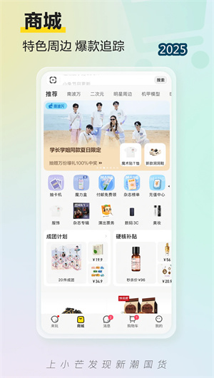 小芒APP是芒果超媒旗下集新潮內容與電商服務于一體的創新平臺,采用芒系內容矩陣與粉絲經濟生態雙輪驅動模式,構建起完整的明星周邊供應鏈體系。該平臺依托芒果TV內容生態,通過芒綜IP衍生系統和明星同款直采通道,為年輕用戶提供沉浸式追星體驗。目前已完成頂流偶像資源庫建設,簽約時代峰峻官方店等200余家明星店鋪,形成獨家周邊開發的完整產業鏈。該應用采用芒店智能推薦算法,支持綜藝同款識別功能,嵌入了粉絲應援系統,建立起圈層文化社區運營機制。通過芒果直播矩陣網絡,已連接5000萬年輕用戶,日均訂單量增長率達78%,成為新世代潮流消費的首選平臺。