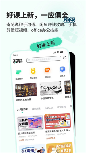 知到APP作為智慧樹網(wǎng)旗下核心子品牌,是全球領(lǐng)先的學(xué)分課程運(yùn)營服務(wù)平臺的重要移動端入口,依托海內(nèi)外2000+大學(xué)會員構(gòu)建的高等教育生態(tài)圈,致力于推動優(yōu)質(zhì)教育資源的社會化共享。這款面向終身學(xué)習(xí)者的知識服務(wù)平臺深度融合名師講堂、開放課程、學(xué)習(xí)社區(qū)三大核心模塊,通過智能化的個性推薦系統(tǒng)與專業(yè)化的學(xué)習(xí)工具矩陣,打造出集課程學(xué)習(xí)、互動討論、進(jìn)度管理于一體的沉浸式學(xué)習(xí)體驗(yàn)。知到APP秉承"源自大學(xué)課堂"的基因,通過學(xué)分認(rèn)證體系與跨校選課機(jī)制,讓每一位求知者都能享受名校課程資源,真正實(shí)現(xiàn)"每天一節(jié)課,給大腦營養(yǎng)"的個性化成長承諾。