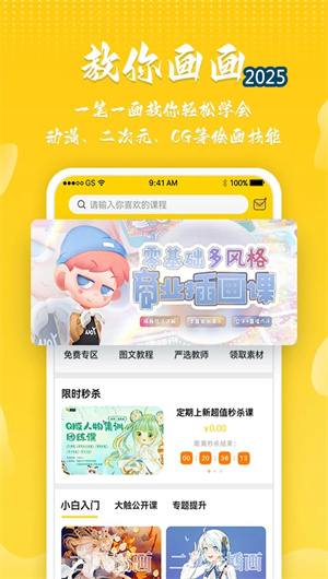 姬蛋APP構建了涵蓋二次元插畫、CG插畫、水彩插畫、古風插畫等多元風格的插畫教程體系,同時提供水彩、彩鉛、速寫等美術基礎訓練課程。平臺針對不同基礎學員設計了漸進式學習路徑,從軟件入門階段的Sai、PS、Huion Sketch工具掌握,到原畫設計階段的人物、場景、Q版創作,每個環節都配備相應的實戰案例與階段測試,確保學員能夠穩步提升繪畫技能,實現從理論到實踐的完美過渡。
