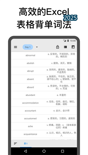 表格背單詞是一款基于Excel表格學習理念深度優化的專業英語詞匯學習工具,通過創新的表格化記憶法和科學的復習體系,為不同階段的英語學習者提供高效的詞匯記憶解決方案。該應用采用純凈無廣告的設計理念,全面保護用戶隱私,不申請任何敏感權限,同時內置覆蓋從基礎教育到出國留學全階段的權威詞庫。其獨特的表格化學習界面和智能記憶管理功能,使詞匯學習效率提升達60%,目前已成為超過200萬用戶信賴的英語學習工具。