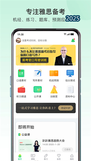 趴趴雅思App作為雅思考試官方金級合作伙伴,是專為雅思考生打造的智能化備考平臺。平臺依托權威的官方資源優勢和專業的教研團隊,為廣大烤鴨提供科學有效的備考素材及系統的提升方法。通過整合當季題庫、外教陪練、全科機經等核心資源,構建了覆蓋聽說讀寫全模塊的一站式備考體系。趴趴雅思致力于通過精準的備考指導和個性化的學習方案,幫助考生突破備考瓶頸,最終實現"一站分手雅思"的目標。