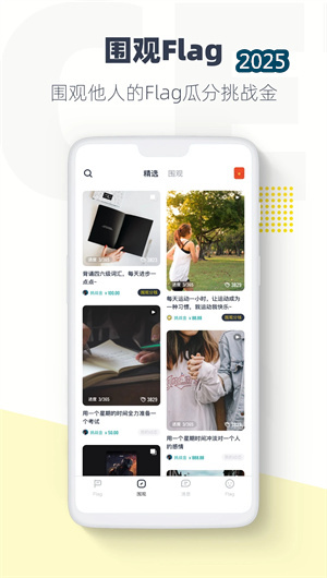 2. 社交化監(jiān)督與投幣激勵功能:平臺構(gòu)建了活躍的Flag圍觀社區(qū),通過投幣鼓勵和評論互動形成強(qiáng)大的社交監(jiān)督力量。每個公開的Flag都會進(jìn)入社區(qū)展示流,其他用戶可以通過投幣支持為挑戰(zhàn)者加油,也可以通過監(jiān)督提醒功能督促目標(biāo)完成。獨(dú)特的挑戰(zhàn)金池管理系統(tǒng)自動分配投幣資金,成功的挑戰(zhàn)者不僅能全額拿回基礎(chǔ)挑戰(zhàn)金,還能獲得圍觀者的額外打賞,形成良性的激勵循環(huán)。