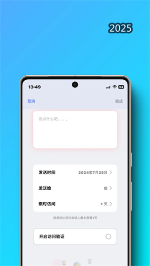 3. 時光信箱功能基于智能時間觸發(fā)引擎,支持用戶創(chuàng)建定時發(fā)送的數(shù)字信件與媒體包裹。信件編輯系統(tǒng)提供豐富的模板庫與個性化定制選項,支持添加附件與交互式內(nèi)容。發(fā)送時間管理系統(tǒng)允許設(shè)置具體日期、生命事件或條件觸發(fā),確保在特定時刻精準送達指定收件人,讓情感傳遞不受時空限制。