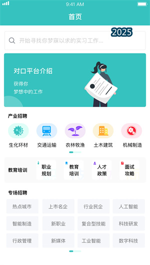 對口實習APP是一款深度聚焦于大學生實習與就業領域的垂直服務平臺,精準定位于搭建高校人才與企業招聘者之間的高效溝通橋梁。平臺依托先進的人工智能算法與龐大的行業數據庫,構建了一個集智能匹配、在線求職、人才篩選于一體的綜合性實習就業服務生態。其核心使命是通過智能推送和大數據匹配技術,徹底解決學生“找實習難”與企業“招人難”的雙向困境,讓大學生用戶能夠快速找到屬于自己的企業,同時幫助企業高效、精準地招納賢才,最終實現人才與崗位的精準對口,優化人力資源配置,賦能未來職場。