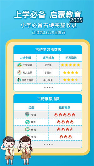 平臺收錄300+位詩人的完整生平與創作背景,構建了完整的詩人檔案庫。創新的流派脈絡圖清晰展示不同詩人間的師承與影響關系,代表作品集錦呈現各時期創作特色。深度的文學史視角將單首古詩置于宏觀歷史背景中解讀,潛移默化中培養孩子的文學素養與審美能力。