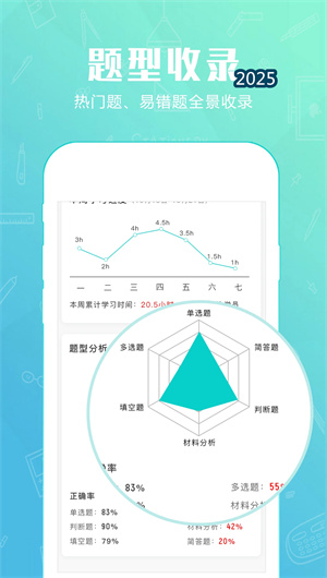 3. 才士題庫的學(xué)習(xí)分析模塊通過學(xué)習(xí)數(shù)據(jù)統(tǒng)計(jì)詳細(xì)記錄每個(gè)用戶的學(xué)習(xí)行為,能力圖譜生成可視化展示知識(shí)掌握程度,進(jìn)步軌跡追蹤量化學(xué)習(xí)成效。智能提醒系統(tǒng)推送學(xué)習(xí)計(jì)劃與復(fù)習(xí)提醒,個(gè)性化計(jì)劃生成基于學(xué)習(xí)數(shù)據(jù)定制備考方案,成績預(yù)測模型評(píng)估考試通過概率,這種數(shù)據(jù)驅(qū)動(dòng)的學(xué)習(xí)分析使備考針對(duì)性顯著增強(qiáng)。