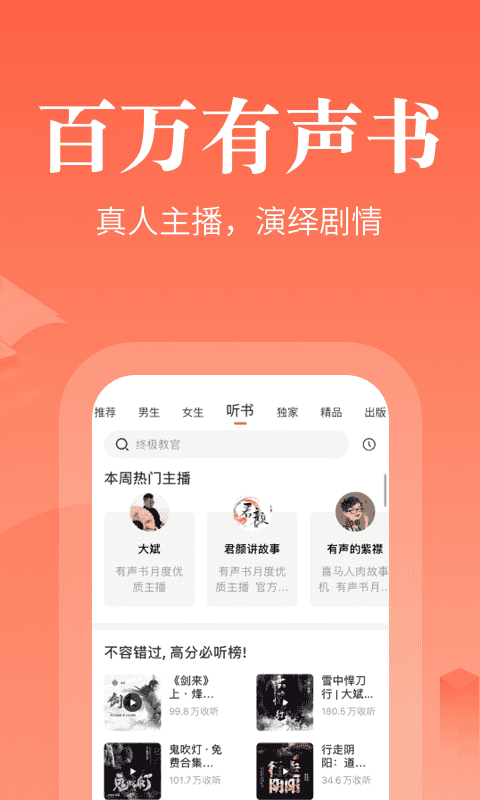 3、聽書:小清新、上班族、娛樂圈、重生、權謀、人物、異能、體育、風水。