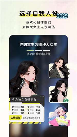 在當今追求個人成長與自我實現的時代背景下,我們創造性地推出了首款深度融合游戲化機制與自律養成體系的大女主成長打卡應用。本應用顛覆了傳統打卡工具的單向記錄模式,以前所未有的“人生游戲化”設計理念,構建了一個專為現代女性打造的沉浸式個人成長宇宙。我們將角色養成系統、行為動力學模型與成長型思維訓練有機結合,通過數字化自我鏡像技術,讓每位用戶都能在虛擬世界中映射并塑造理想的自我。該平臺以敘事性任務鏈為核心驅動,結合個性化成長路徑算法,為每位用戶生成獨一無二的人生主線劇情。在這里,成長不再是一句口號,而是一場可量化、可交互、可持續演進的生命體驗,真正實現“養成你自己”的終極目標。