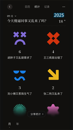平臺每年年末或用戶指定的紀念日,會基于全年的計數數據,自動生成一份風格獨特的 “我的XXXX年計數人生報告” 。這份報告不是干巴巴的統計數字,而是充滿洞察和趣味的敘事:它會告訴你今年哪個月是 “emo之王” ,咖啡與奶茶的戰爭中誰取得了勝利,和男朋友吵架計數后和好的平均速度,以及你發現了多少種好看的天空。報告還會提煉出一些你未曾察覺的模式,比如每次大額購物計數后是否伴隨更高的加班計數。這種數據驅動的年度回顧,為用戶提供了一種全新的、量化的自我認知視角,成為了許多用戶年末最期待的“儀式感”,報告生成功能的用戶使用率達92%。