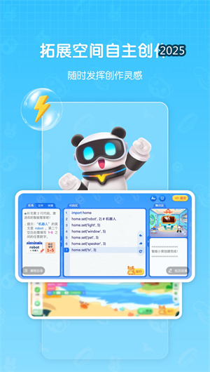 App不僅是一個(gè)學(xué)習(xí)平臺(tái),更是一個(gè)集成化的創(chuàng)作工坊。除了基礎(chǔ)的編程環(huán)境,平臺(tái)集成了面向青少年的輕量化AI工具模塊,如AI繪畫助手、智能代碼補(bǔ)全提示、語音交互編程等,引導(dǎo)學(xué)員 “手把手學(xué)習(xí)前沿AI工具” ,用科技賦能創(chuàng)意表達(dá)。學(xué)員可以在此自由創(chuàng)作,將所學(xué)編程原理與AI能力結(jié)合,制作出更具想象力的作品,并一鍵分享至平臺(tái)社區(qū)或?qū)С鰹楠?dú)立應(yīng)用,在實(shí)踐中深化對未來時(shí)代通用語言的理解。