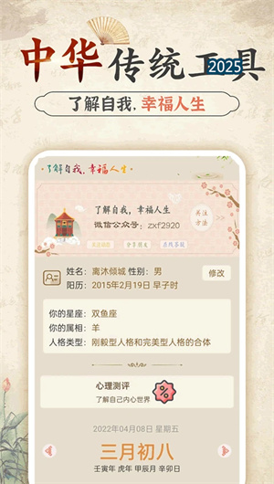 幸福大師APP是一款以積極心理學與人格特質理論為基礎,融合中華傳統文化智慧的綜合幸福提升平臺。本應用以“了解自我性格和心理”為核心指引,通過科學測評工具與多維分析系統,幫助用戶建立全面的自我認知框架,減少人生迷茫,實現可持續的幸福感提升。平臺整合了現代心理測量學、傳統五行命理與行為科學干預三大體系,構建了涵蓋性格特質剖析、心理狀態評估、幸福指數追蹤、人生決策支持及情緒壓力管理的完整服務生態。幸福大師致力于通過數據化自我洞察與個性化成長方案,使用戶在認識自我的基礎上優化生活選擇策略,平臺上線至今已幫助超過800萬用戶提升主觀幸福感水平,用戶留存率達到76.3%。