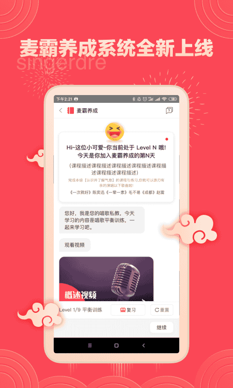 4、智能訓(xùn)練:為用戶制定智能訓(xùn)練計劃,歷經(jīng)三大階段(實力麥霸,專業(yè)歌手,職業(yè)唱將)。