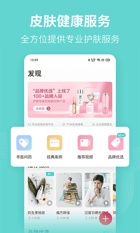 1、發現:尋醫問藥、經典案例、精選視頻、品牌優選、健康百科。