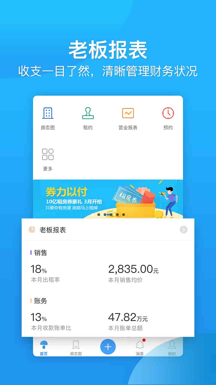1、覆蓋租房全流程,更有強大的自營銷功能,滿租版全新發布,大大提升出房效率,讓您天天都滿租。