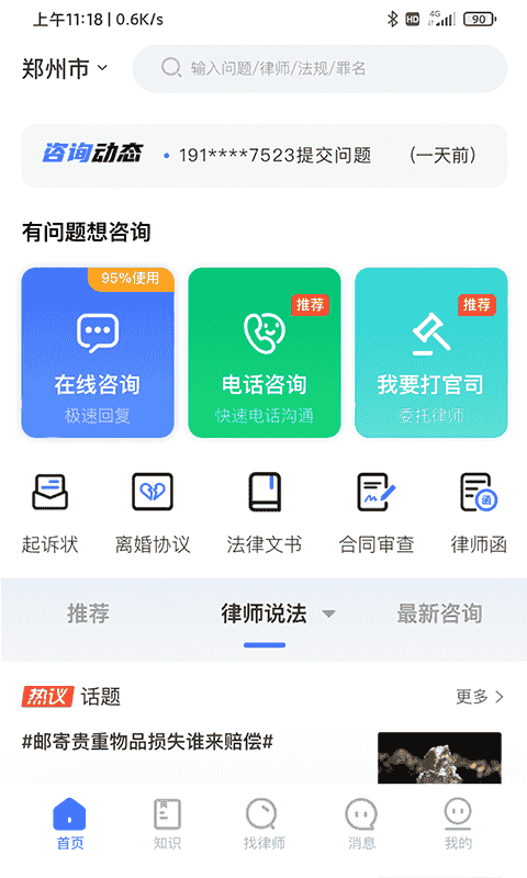 2、咨詢:在線咨詢、電話咨詢、我要打官司。