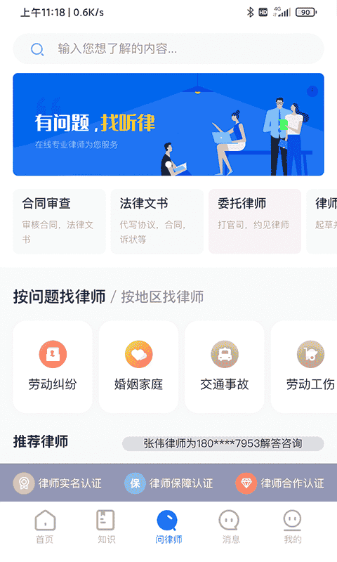 聽律法律咨詢是一款由河南律聊網絡科技有限公司推出的律師咨詢軟件。