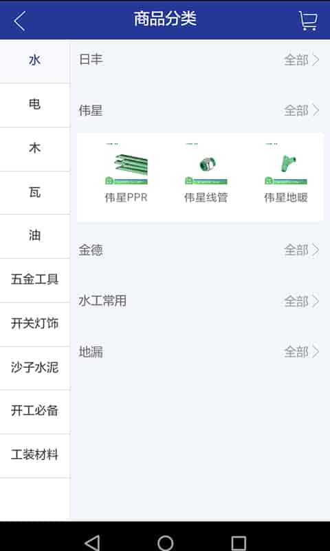 4、公裝材料:乳膠漆、膩子粉/石膏粉、石膏板、防腐涂料、鋁塑板、瓷磚膠、墻固/地固、電線電纜、鍍鋅線管...