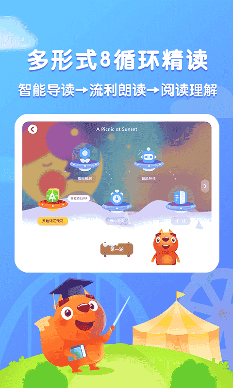 1、AI智能糾音可跟讀打分、單詞糾音;閱讀后實(shí)時(shí)推送閱讀報(bào)告,閱讀效果一目了然。