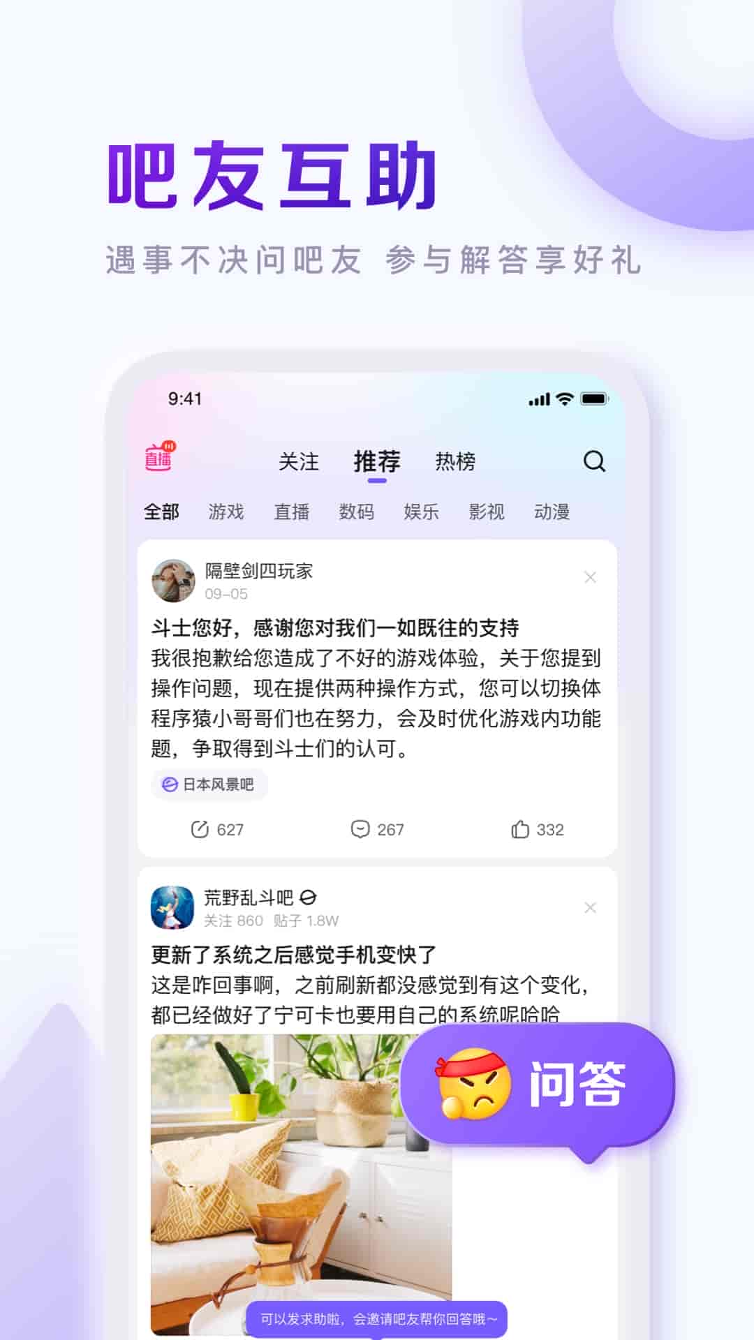 1、溫馨滿滿的社交圈,幫助你解答問題,分享生活的酸甜苦辣,學習大神操作,分享攻略心得。