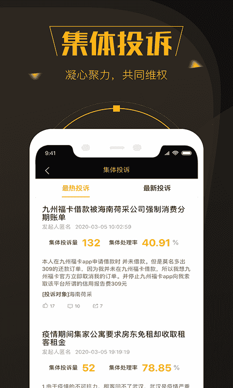 4、投訴:針對自己消費中遇到的問題提交個人投訴;針對多個消費者遭遇的同一問題,發起集體投訴。