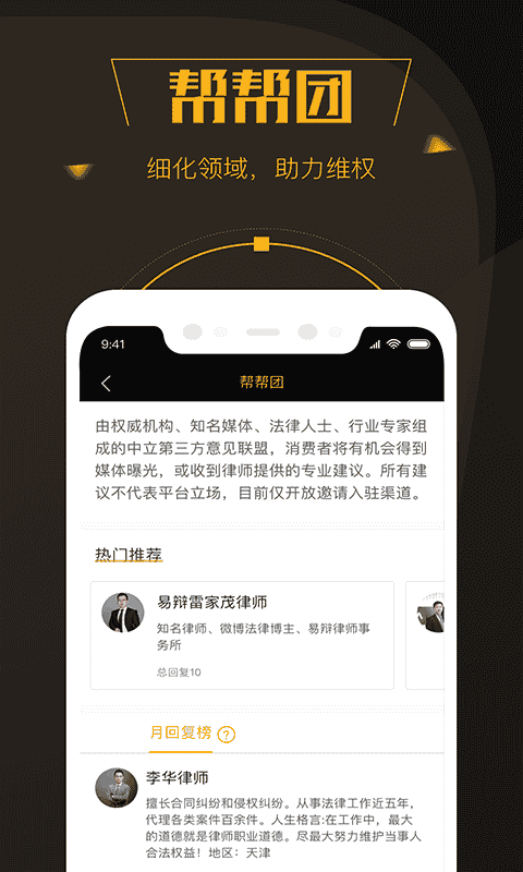 2、紅黑榜單,為您甄選最優企業;幫幫團細化領域,助力維權;集體投訴共同維權,凝心聚力;投訴主播一鍵送達。