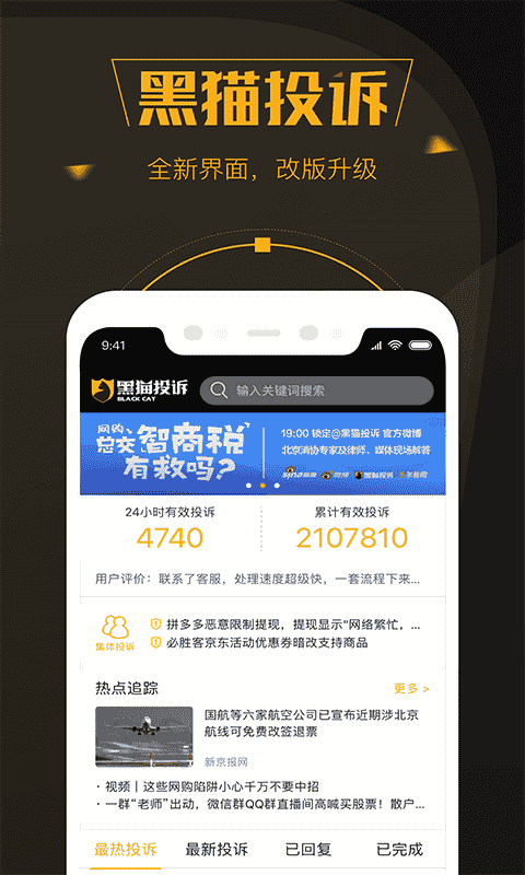 1、一鍵投訴,隨時隨地維權;極速解決,合作企業24小時響應;輸入關鍵詞即可查詢商家/投訴內容。