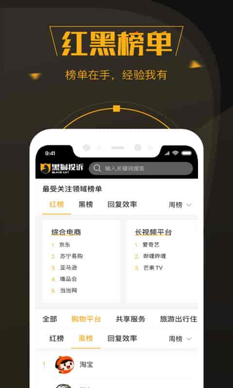 3、紅黑榜:購物平臺、共享服務、旅游出行住宿、娛樂生活、教育培訓。
