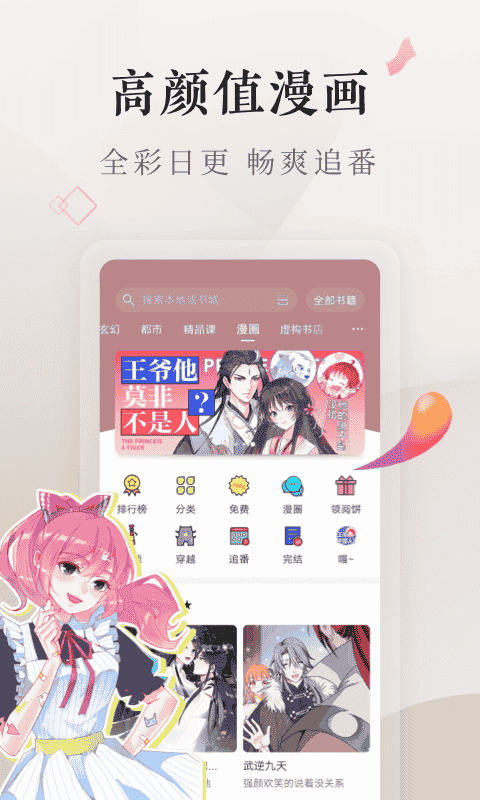 3、高顏值漫畫,全彩日更,暢爽追番,如星夢偶像計劃、超模戀人有點甜、都市妖怪手冊、十感巡游者、贗品專賣店、動物靈魂管理局、月影馬戲團等漫畫。
