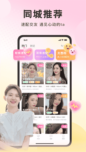 附近佳緣-真人約會聊天交友APP是一款專門為單身人士打造的約會聊天交友平臺。通過精確的地理定位、個性化的推薦算法和真實的用戶資料,幫助用戶快速找到附近的合適伴侶,輕松開啟一段美好的戀情。