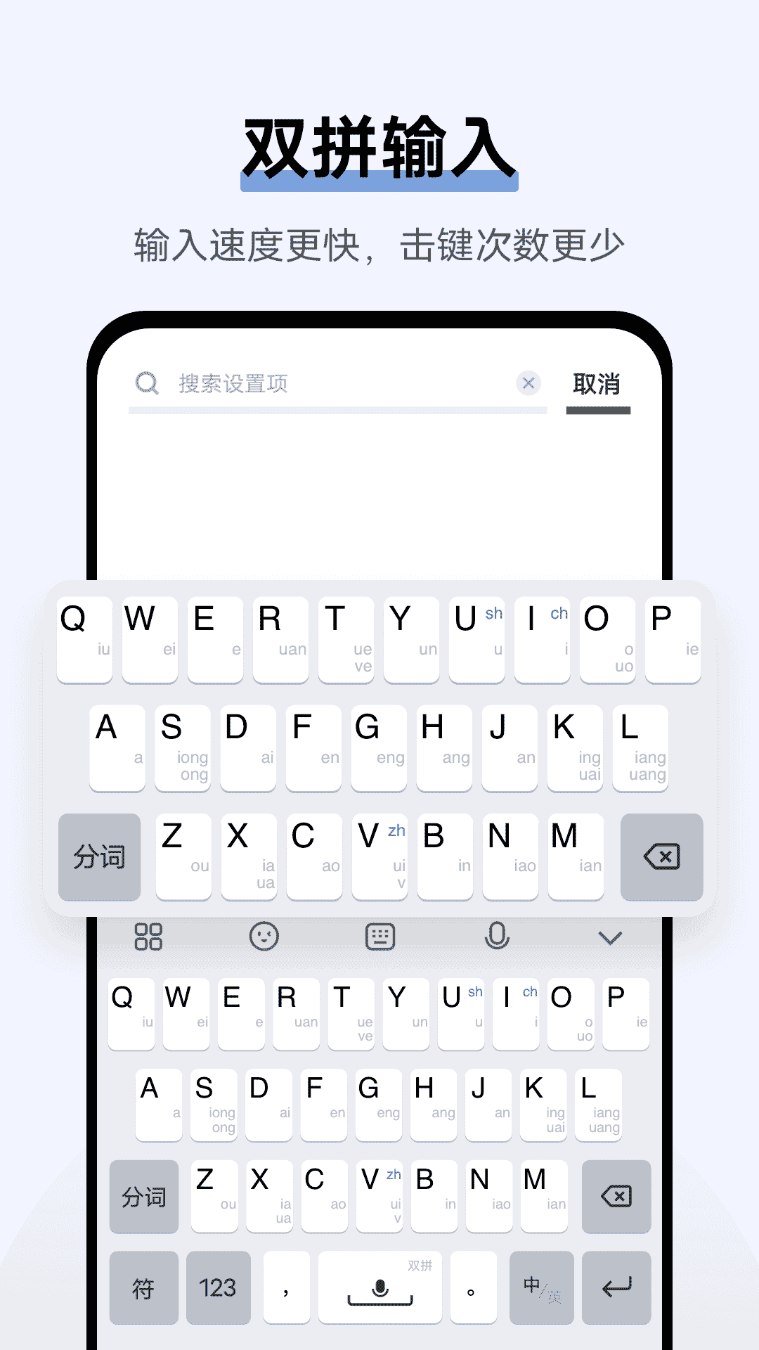 1、輸入建議:Jovi輸入法能夠根據(jù)用戶(hù)輸入習(xí)慣,智能推薦相關(guān)輸入建議,提高輸入速度和準(zhǔn)確性。