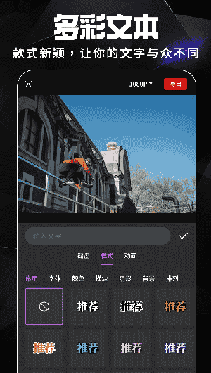 4、文字編輯:提供多種文字編輯選項,支持動態文本效果,讓用戶為視頻添加標題、字幕、字幕等文本元素。