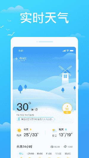 1、實時天氣:提供當前所在地區(qū)的實時天氣信息,包括氣溫、濕度、風力等詳細數(shù)據(jù)。