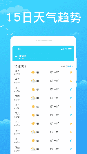 2、預報查詢:用戶可查看未來一周甚至更長時間的天氣預報,方便規(guī)劃活動和出行安排。