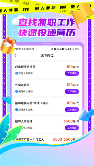 2、快速應(yīng)聘:用戶可以直接通過軟件向心儀的兼職崗位投遞簡歷,簡化了求職流程,提高了效率。
