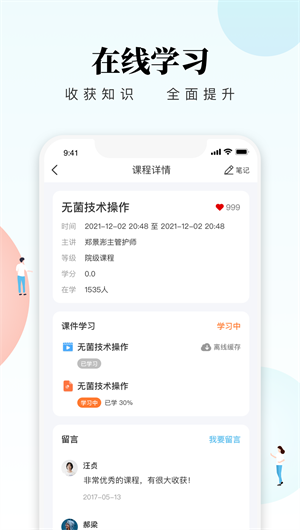 知識學習:提供豐富的專業知識學習資源,包括護理操作技巧、護理理論知識、最新護理研究等,方便護士隨時隨地學習,提升自身能力。