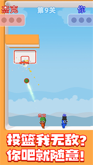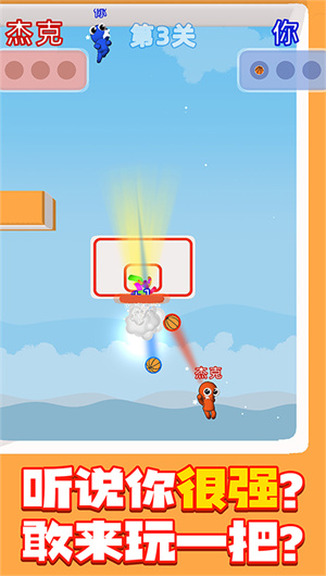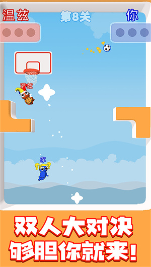 雙人對決:游戲采用雙人對戰模式,玩家需要和另一位玩家進行一場激烈的籃球對決。