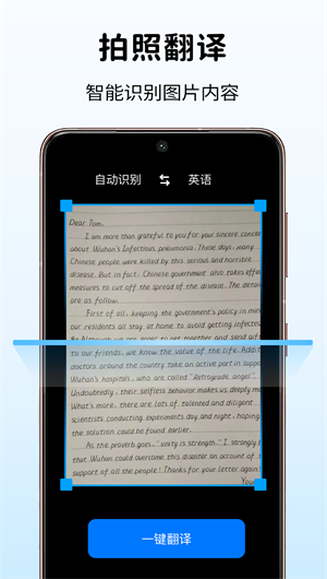 快速翻譯:用戶只需輸入或拍照識別需要翻譯的單詞或短句,"天天翻譯君APP"就能在瞬間完成翻譯。