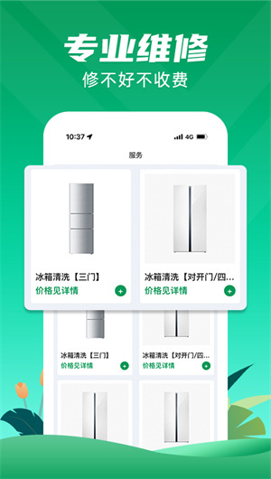 "冰箱維修一步到家"是一款專業的家庭維修應用,提供一站式上門服務,以滿足您的多元化需求。具體服務包括上門家電維修、管道疏通、水電維修、防水補漏、墻面翻新、家居門窗、家電清洗、數碼辦公8大服務范圍,專業、便捷,只需一鍵即可呼叫專業維修師傅上門服務。